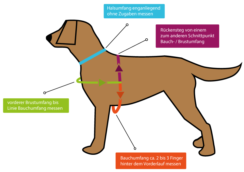 Genau genommen, die Ihres Hundes. Bitte geben Sie beim Bestellvorgang die gewünschten Angaben und Maße Ihres Hundes unter „Fragen zum Produkt/ Größe“ an und warten auf unsere Antwort mit der passenden Grössenermittlung. Somit gehen wir sicher, daß wir Ihrem Hund ein perfekt sitzendes und bequemes Produkt liefern können.